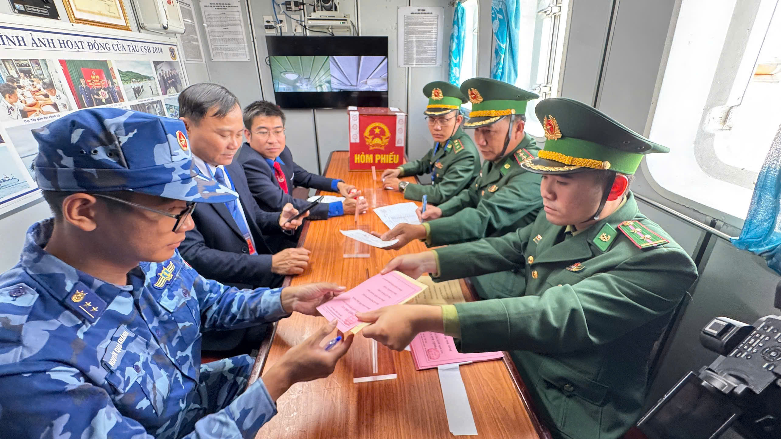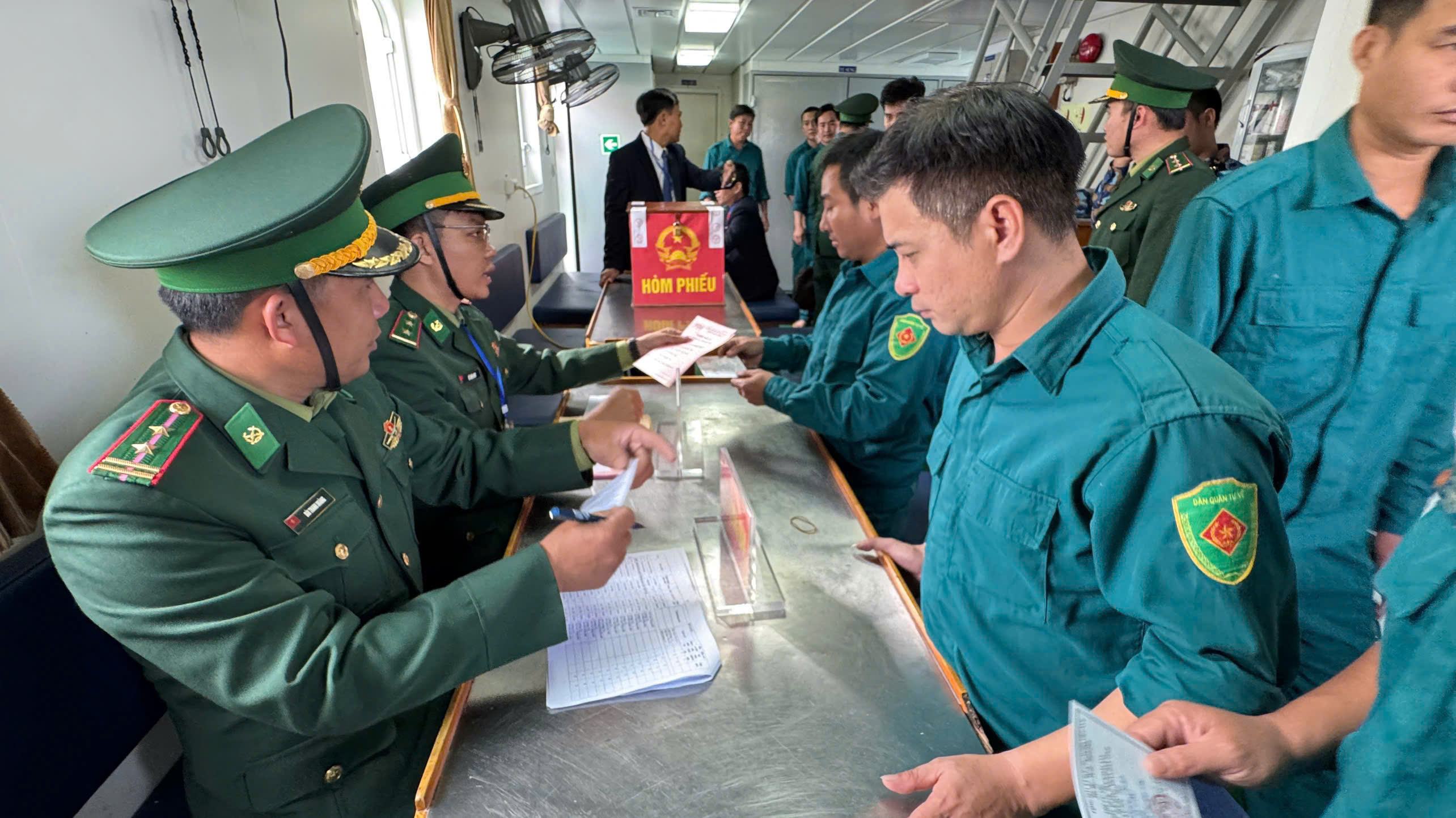 Để tạo điều kiện cho các lực lượng làm nhiệm vụ trên biển thực hiện quyền bầu cử, Tổ bầu cử số 1 đã bố trí tàu và lực lượng đưa hòm phiếu phụ ra các tàu đang làm nhiệm vụ để các cử tri thuộc lực lượng Cảnh sát biển, Kiểm ngư, Hải đội dân quân thường trực và Hải quân bỏ phiếu theo quy định.