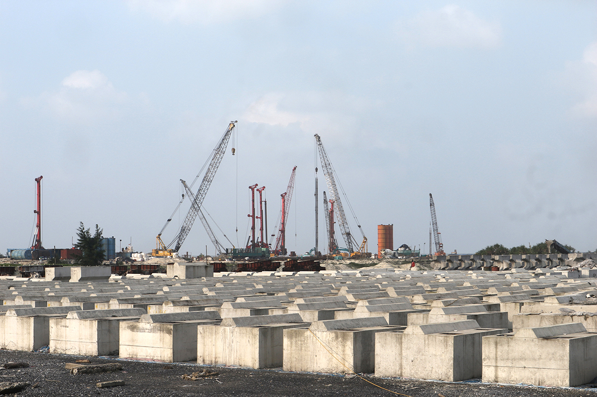 Quang cảnh thi công công trình ở vùng biển Mỹ Thủy, huyện Hải Lăng -Ảnh: Đ.T