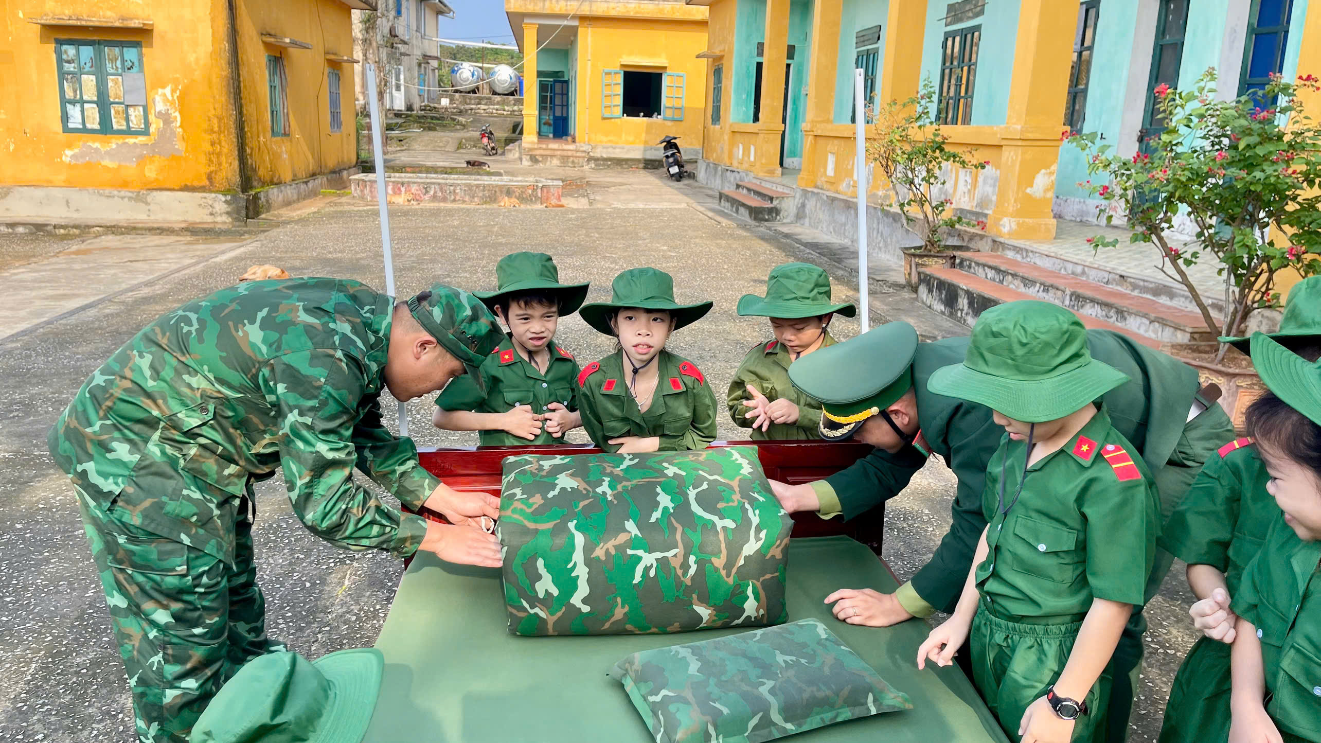 Hoạt động trải nhiệm làm chú bộ đội của các em học sinh Trường Mầm non - Tiểu học Hoa phong Ba